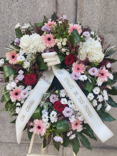 Un homenaje elegante y lleno de respeto, diseñado con flores frescas de la más alta calidad. La Corona Tanatorio Leganés combina hortensias, rosas y gerberas… en un diseño moderno y armonioso, acompañado de verdes naturales que realzan su belleza.