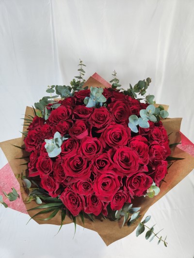 Las reinas indiscutibles de las flores son las Rosas Rojas de tallo largo. Te las decoramos con el toque único de Ainara Floristas. Estas rosas de primera calidad destacan por su elegancia y sofisticación natural.